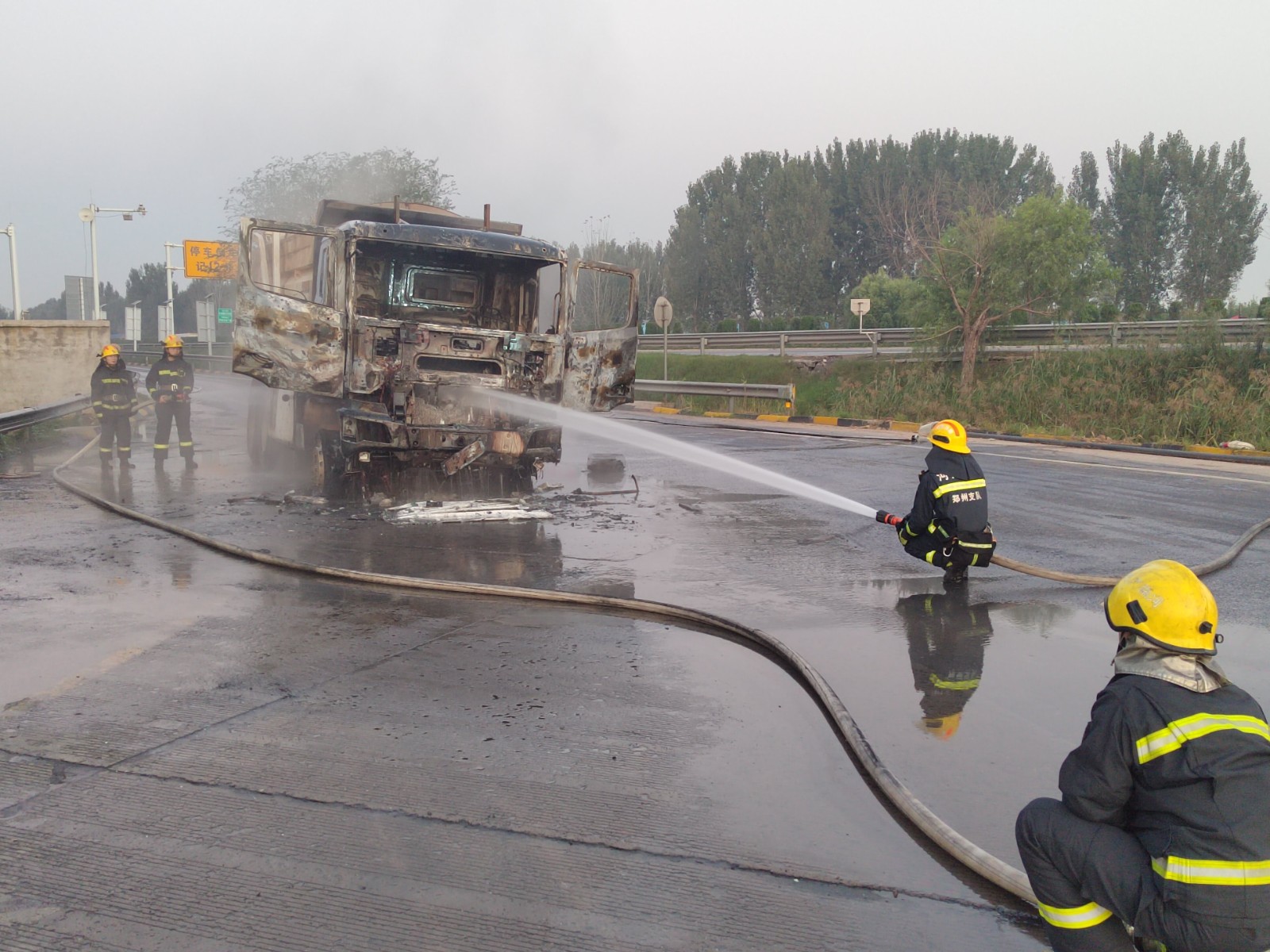 車輛自燃火勢危急 中牟服務(wù)區(qū)緊急救援