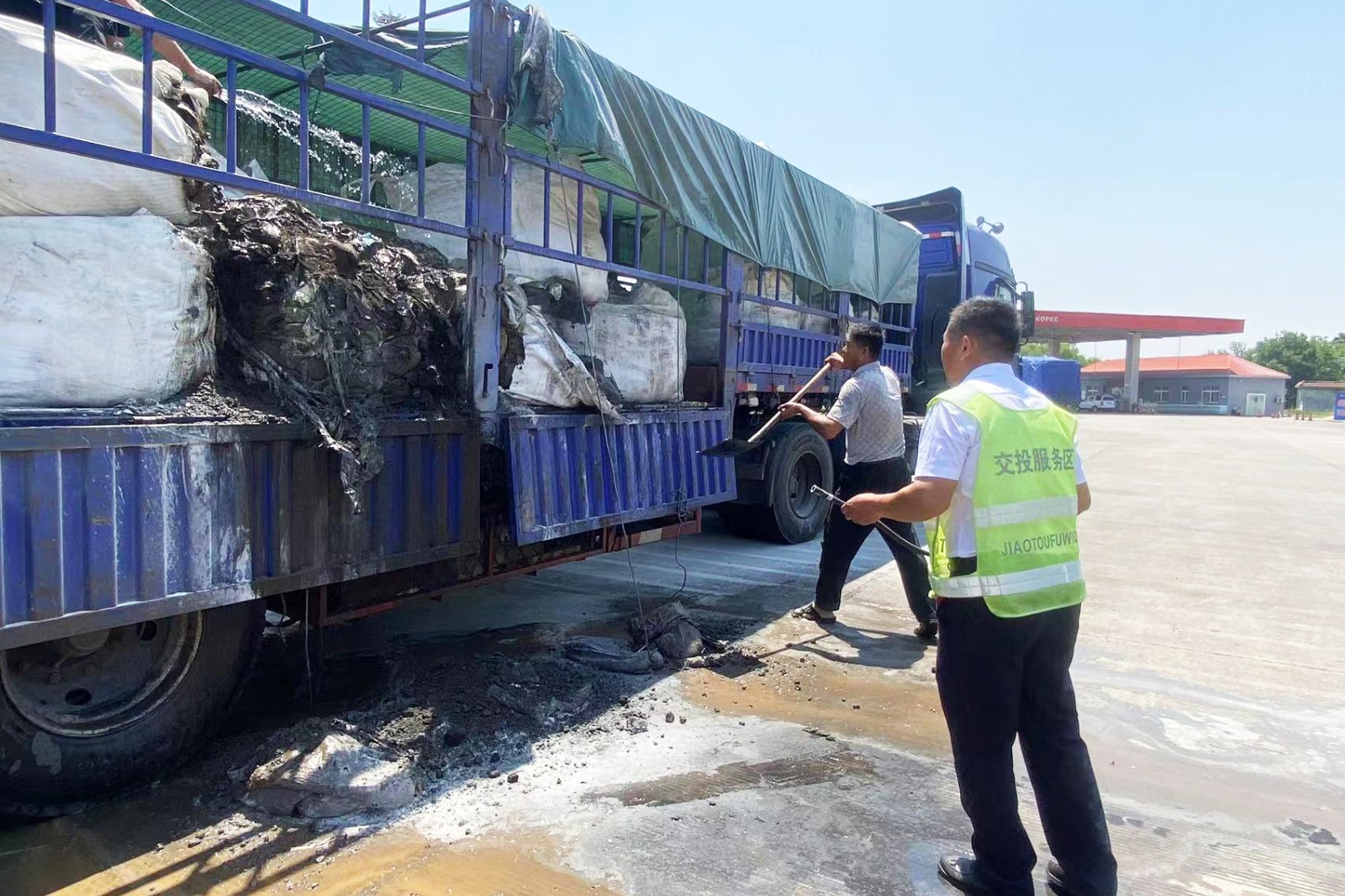 商丘東服務區妥善處置貨車自燃顯擔當